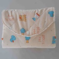 Composé d’un coton matelassé pour plus de confort, et d’une éponge en coton imprimé, vous le pliez et il se ferme par un bouton pression en résine.